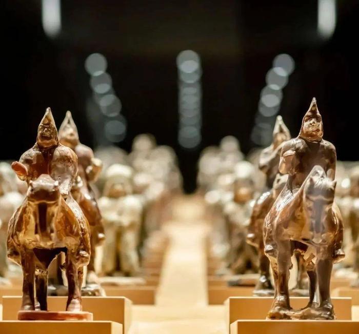 司马金龙墓出土的釉陶俑阵,数量之庞大,在同时期的墓葬中极为罕见,总数超过360件。大同市博物馆经过修复整理挑选相对完好的陶俑238个还原出了当时的盛况。