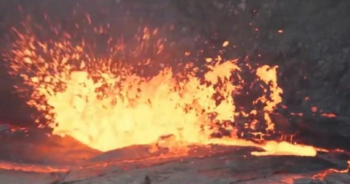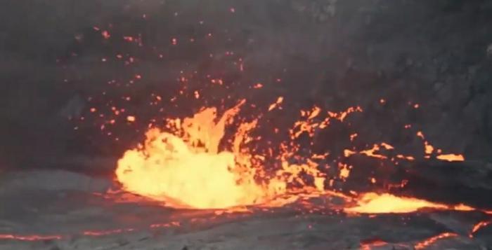 据悉男子准备做个实验,想看看火山里放水是什么情况,于是拿起一桶水直接扔进了火山当中,刚开始火山还没什么动静,男子还拿手机拍照,慢慢的,火山开始沸腾起来,火花也是越来越高,吓的男子赶紧远离火山口。