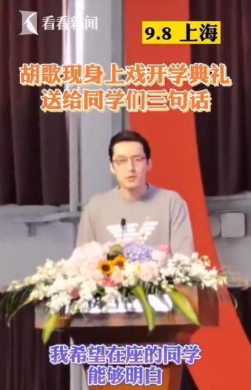 胡歌说:“在座的同学将来或许会成为编剧、导演、演员、舞台美术灯光设计等等,这些将会是你们的职业。你们将来会从事戏剧创作,影视创作,这将是你们的事业,但明星或偶像,仅仅是附加在职业上的光环,能够清醒地认识到这一点将直接影响你未来几年学习生活中的每一个选择。”
