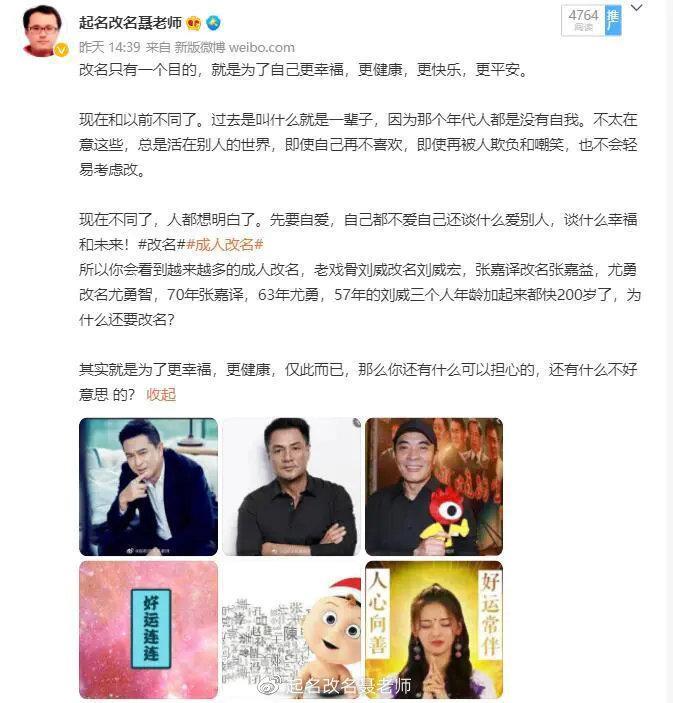 所以你会看到越来越多的成人改名,老戏骨刘威改名刘威宏,张嘉译改名张嘉益,尤勇改名尤勇智,70年张嘉译,63年尤勇,57年的刘威三个人年龄加起来都快200岁了,为什么还要改名?