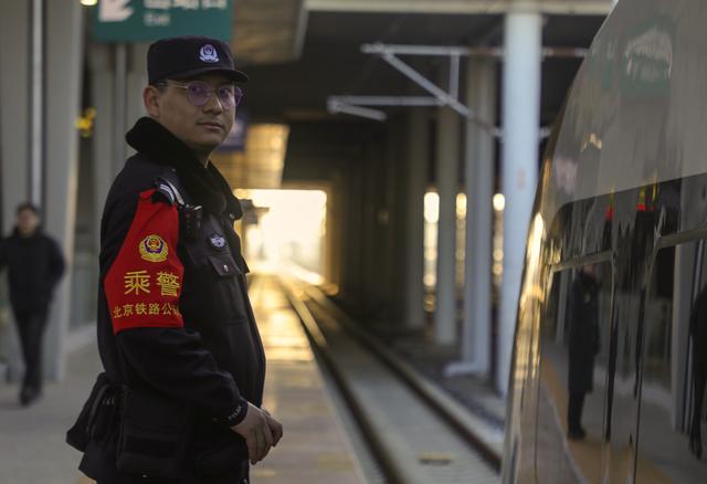 列车在城市间呼啸穿梭,窗外早已是万家灯火。2月9日除夕晚上9点,G9924次旅客列车上,归家途中的旅客正托着手机收看春节联欢晚会。“新年快乐,警察叔叔!”一声清脆的祝福在车厢里响起。正在车厢内巡视的青年乘警王嘉尧收获了来自小朋友的第一句新年问候,忍不住嘴角上扬。半小时后,列车抵达终点站北京北站,王嘉尧终于可以回家了。“这趟出乘连续三天在外,幸运的是赶上了除夕夜,可以陪爸妈过年了。”王嘉尧心中喜悦。