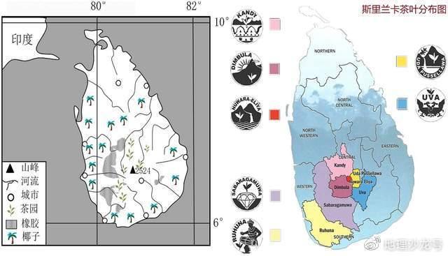 斯里兰卡三大传统农作物分布和茶叶分布图