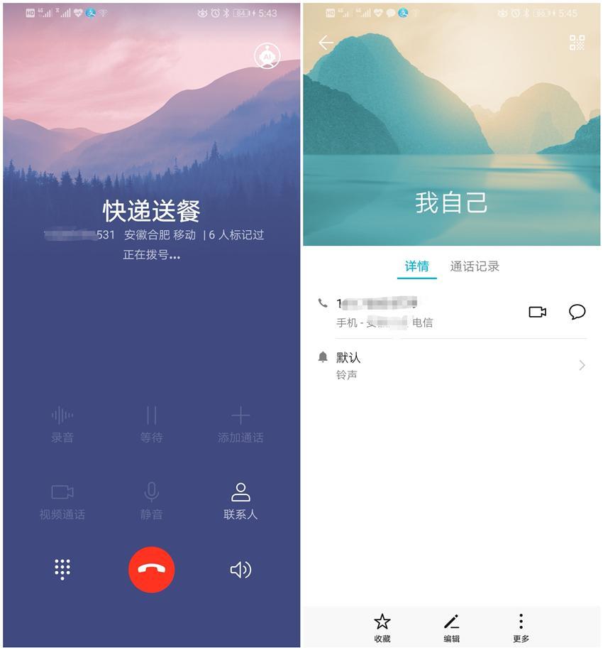 我们都知道之前EMUI系统都是采用广泛使用的毛玻璃效果,现在的系统都统一追求生活化,Magic UI 2.0自然不会落下,当你接听电话会发现通话界面变成了简笔画,干净舒畅,没有多余的复杂线条。而且接到外卖快递等号码会将号码主体优于号码显示,让你不用担心是不是销售电话。