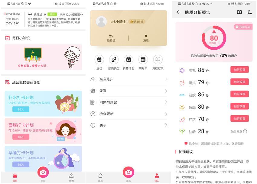 作为荣耀Magic2的特色功能,你需要提前下载好爱肌肤APP配合使用。通过两次闪光灯拍摄,软件会计算出你的皮肤情况,并给出改善保养建议,虽然这个功能貌似对于女生更有吸引力,但笔者觉得女生往往更懂得护肤,男生往往很糙,甚至该用什么洗面奶都不知道,这时候爱肌肤就可以给男生一些基本的护理知识了。