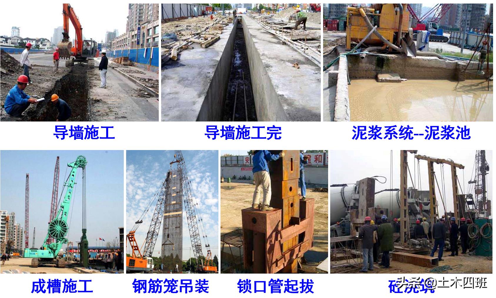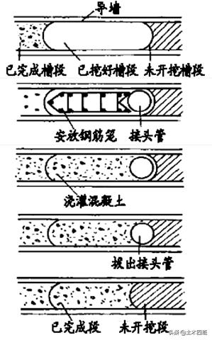 先建造钢筋砼地下连续墙,达到强度后在墙间用机械挖土。该支护法刚度大、强度高,可挡土、承重、截水、抗渗,可在狭窄场地施工,适于大面积、有地下水的深基坑施工。