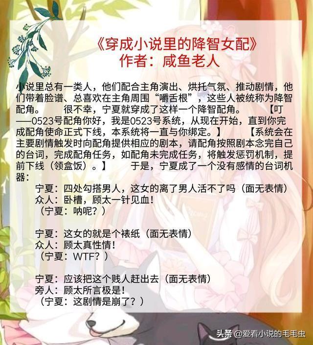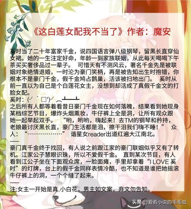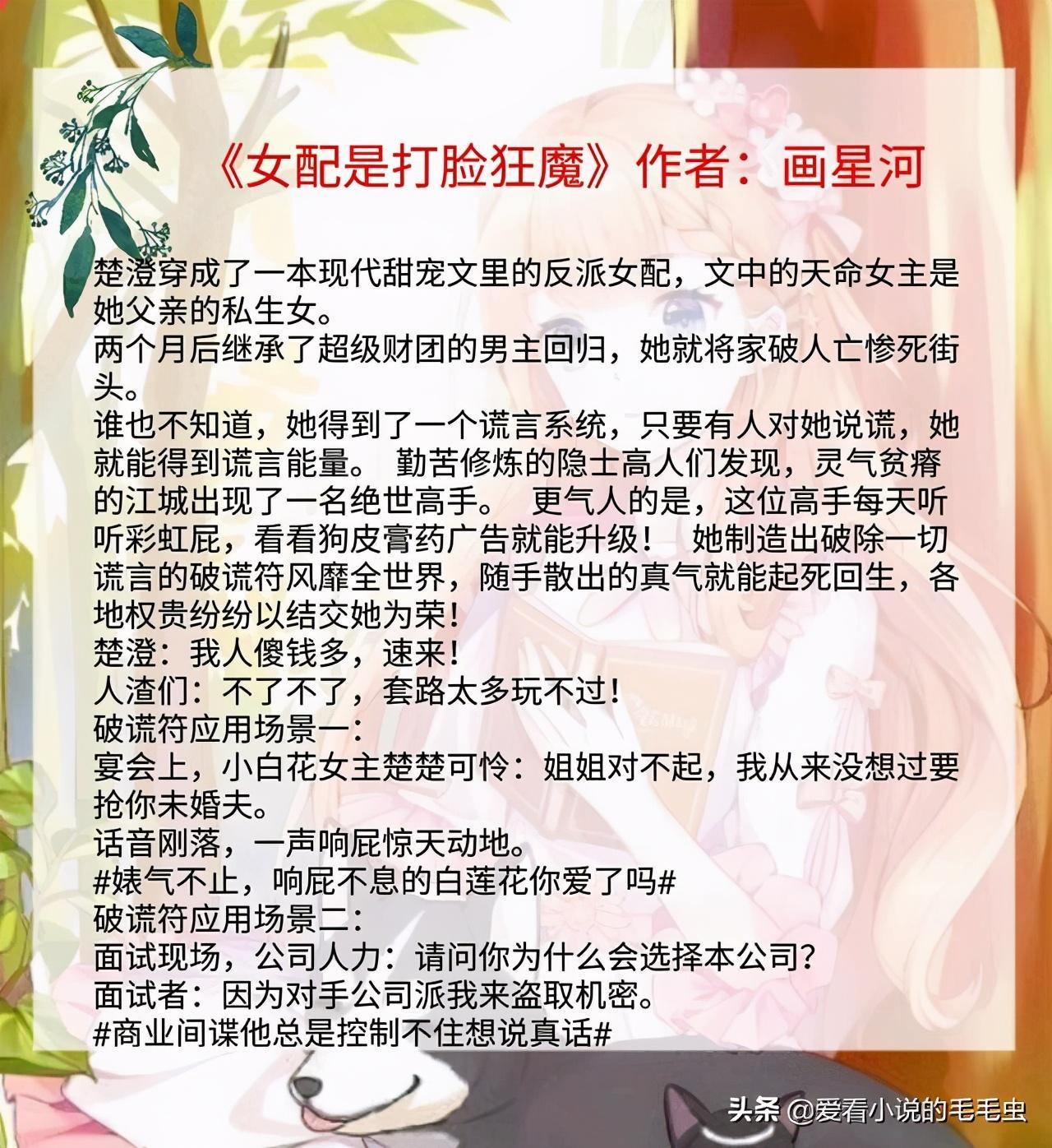 大家好,我是毛毛虫,今天推荐推文|五本高质量女配穿书文,女配是打脸狂魔,苏爽度十足哦~