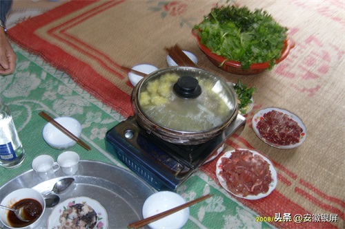 一家人围坐在这个席上,席地而坐,吃过火锅