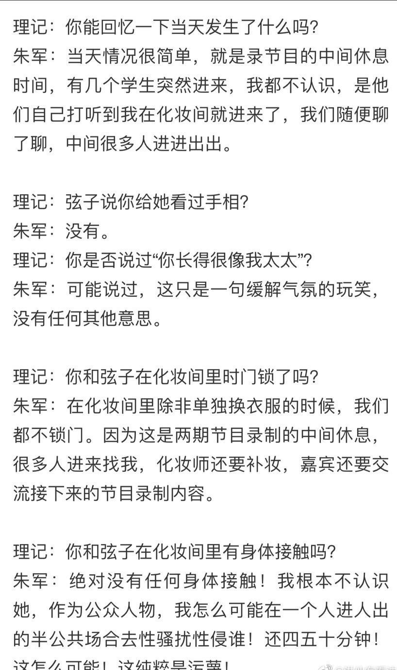 朱军第一次正面回应弦子一案:我从未触碰过那位女士一分一毫。