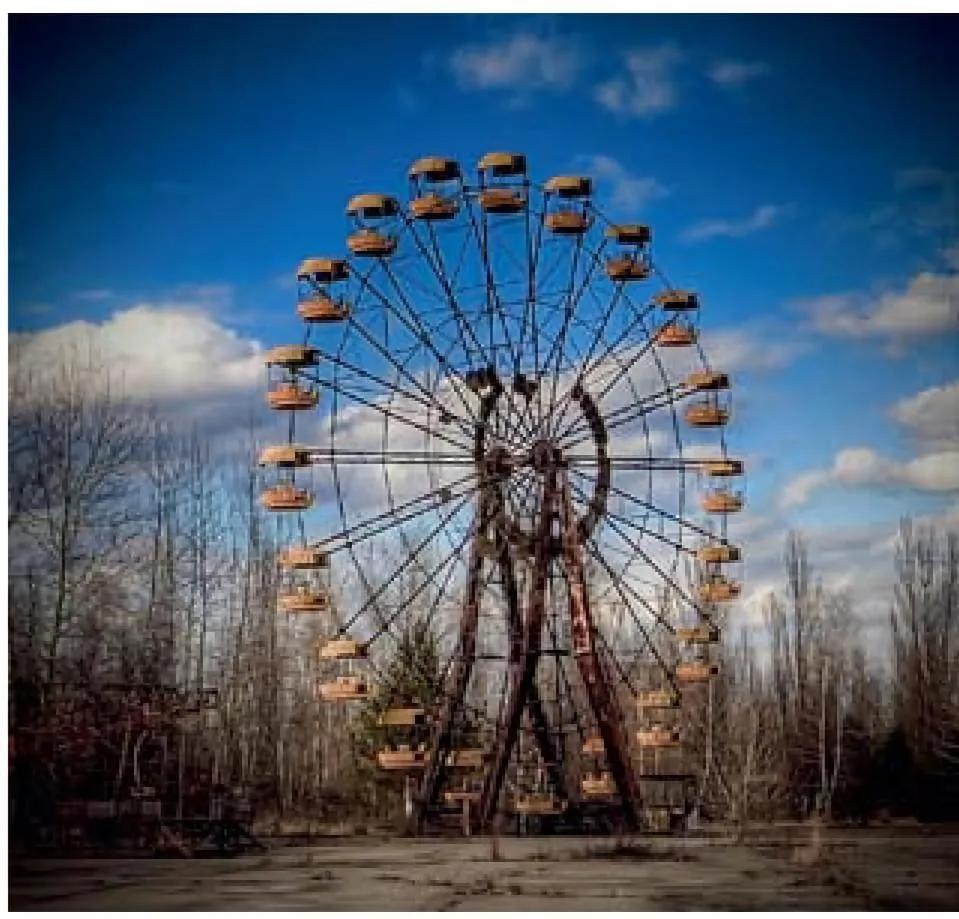 切尔诺贝利核能发电厂在乌克兰境内,1986年4月26日,发电厂发生严重的泄漏及爆炸事故,喷涌而出的8吨多强辐射物质释放了大约2.6亿居里的辐射量,是日本广岛原子弹爆炸能量的几百倍,是有史以来最严重的核事故。核泄漏后的可怕景象给人们留下的阴影一万年也挥之不去。