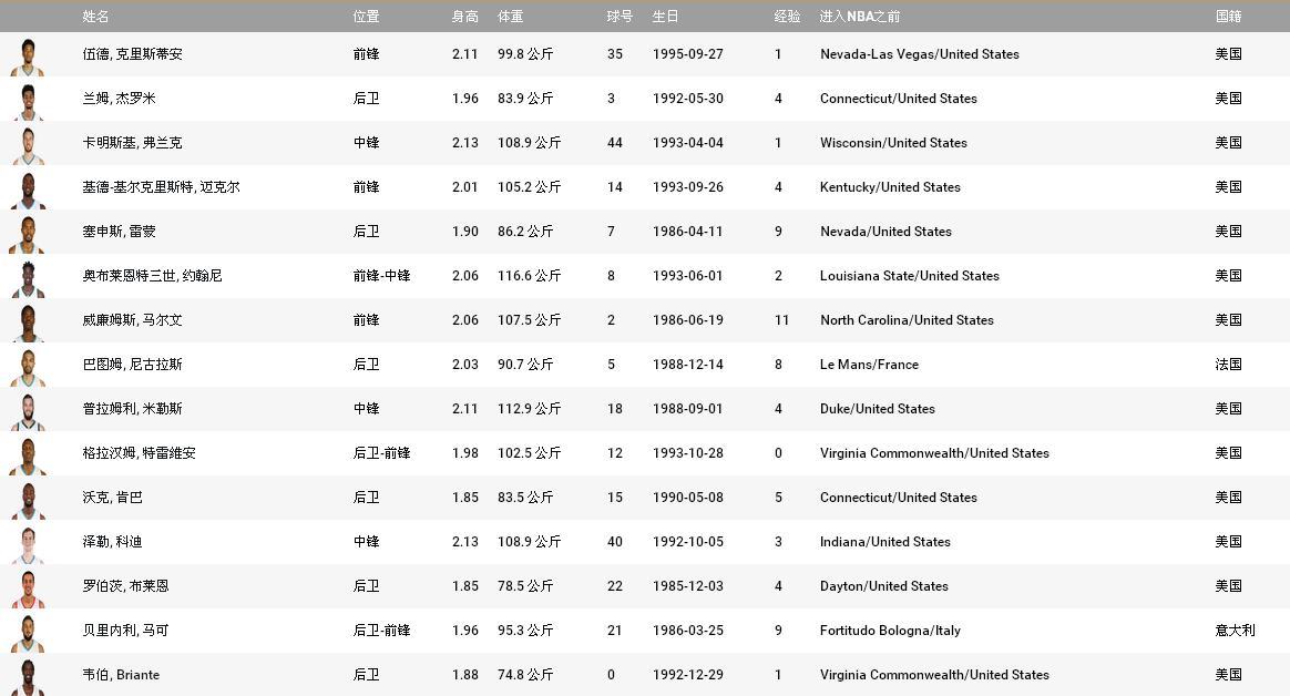 附录:夏洛特黄蜂队2016-2017赛季球员名单: