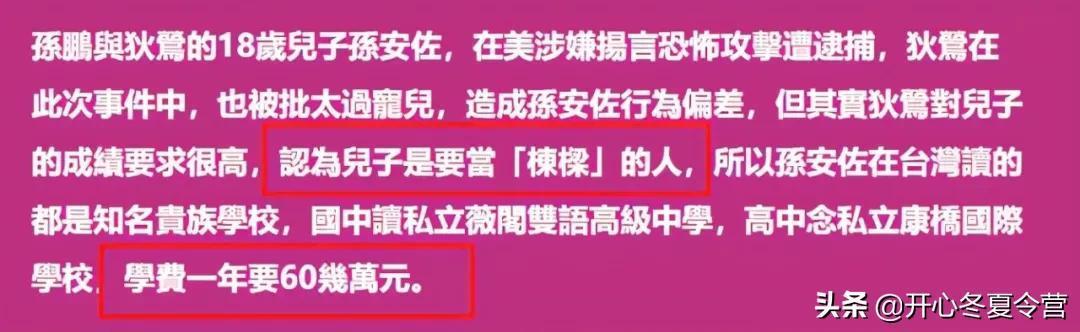 狄莺也十分重视儿子的成长教育,从小就在贵族学校读书,高中一年学费近60万台币,毕业后更是送到了国外留学。