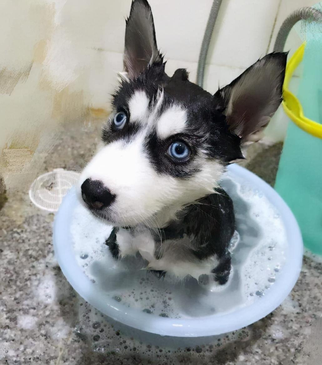 哈士奇那么爱玩,总是会把自己弄得脏兮兮的,但是宠主不要经常帮它们洗澡哦。频繁给它洗澡,会导致它的皮肤干燥,提高皮肤的发病率。