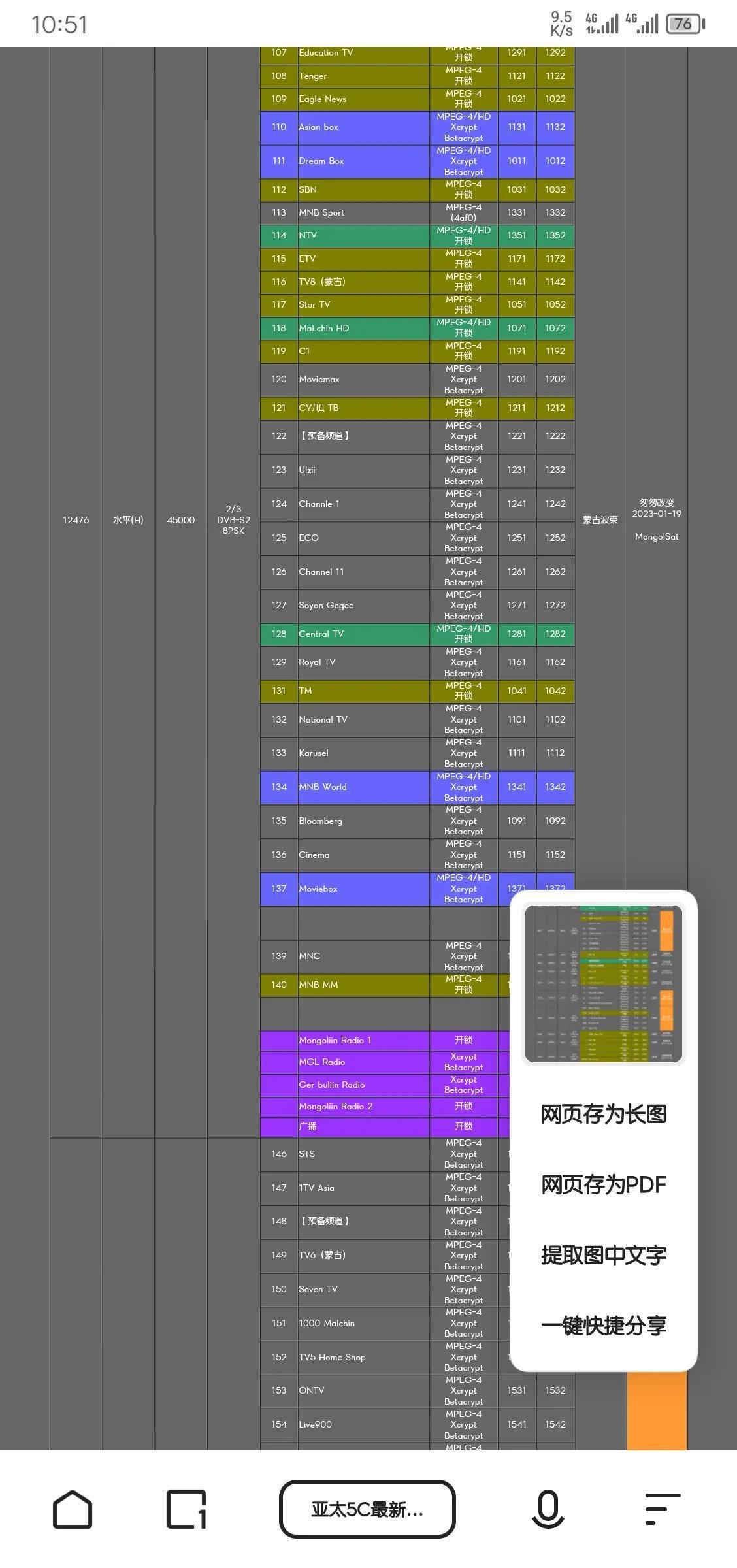 目前我看该卫星也已经退役了,取而代之的是亚太5C号卫星,该卫星正直壮年,目前看所有的电视频道视频格式都改成了MEPG4视频格式 了,对于我们其实不算是特别友好,毕竟我们现在家里压箱底的机子大部分都是只支持MEPG2视频格式的,所以想领略一下风采,还得投资一下,小编家住6楼,如果大家想领略这些节目的风采,等小编的粉丝超过1万可以给买一套设备回来接收一下大家想接收的卫星,来寻找曾经的快乐。最后附上138卫星目前的节目和卫星参数