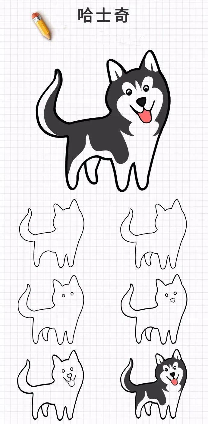 简笔画|20种狗狗画法大全,一学就会,你喜欢的都有哦,收藏