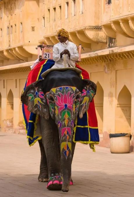 宫殿巨大的门楣和柱子都雕刻得富丽堂皇,国家大厅里有一幅大象的浮雕,由一扇金色的窗户照亮。