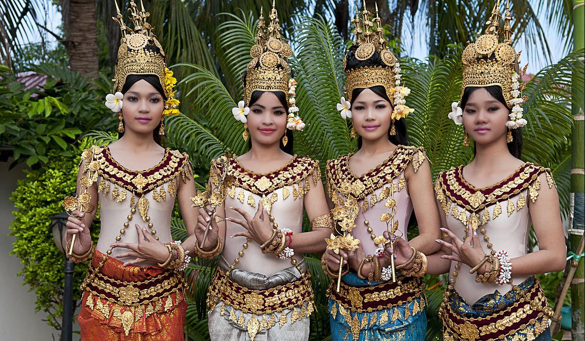 在这个场景中,国王(当时是Srindravarman)穿着装饰着珍珠和宝石的奢华服装四处走动。