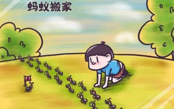 1、蚂蚁搬家:在下雨前,特别是下大雨前,蚂蚁会成群出洞,这就是蚂蚁搬家的由来。在春夏季,天气闷热时,如果大家在晚上发现白蚁不认识回洞的路时,并向灯光处猛扑,这说明一二天内将会下大雨或雷雨。