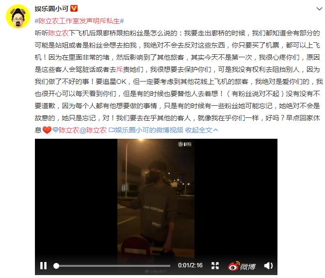 在视频中,陈立农表示他并不反对粉丝的机场跟拍,因为只要是买了机票都可以上飞机。但是农农希望大家在机场中也要注意安全,同时也要注意不妨碍到其他的乘客。从陈立农的这段话中,可以看出他对粉丝的心疼,并且句句在理,实在是太真实了!