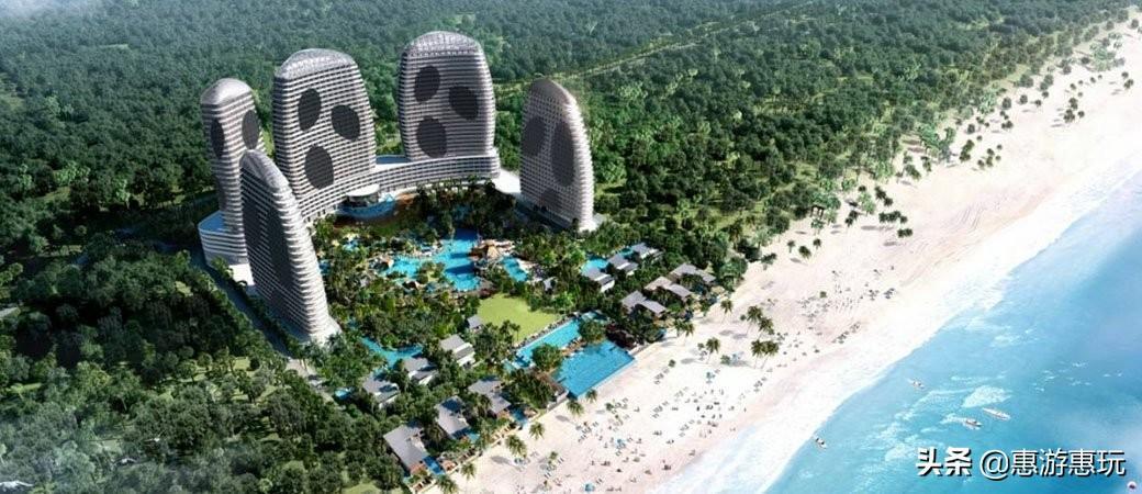 惠州碧桂园十里银滩酒店坐落在十里铂金沙滩边上,整体呈蝶形,中部半圆球形为酒店大堂,左右两边两栋如蝴蝶翅膀般宏伟的建筑是酒店客房和临海酒店公寓。