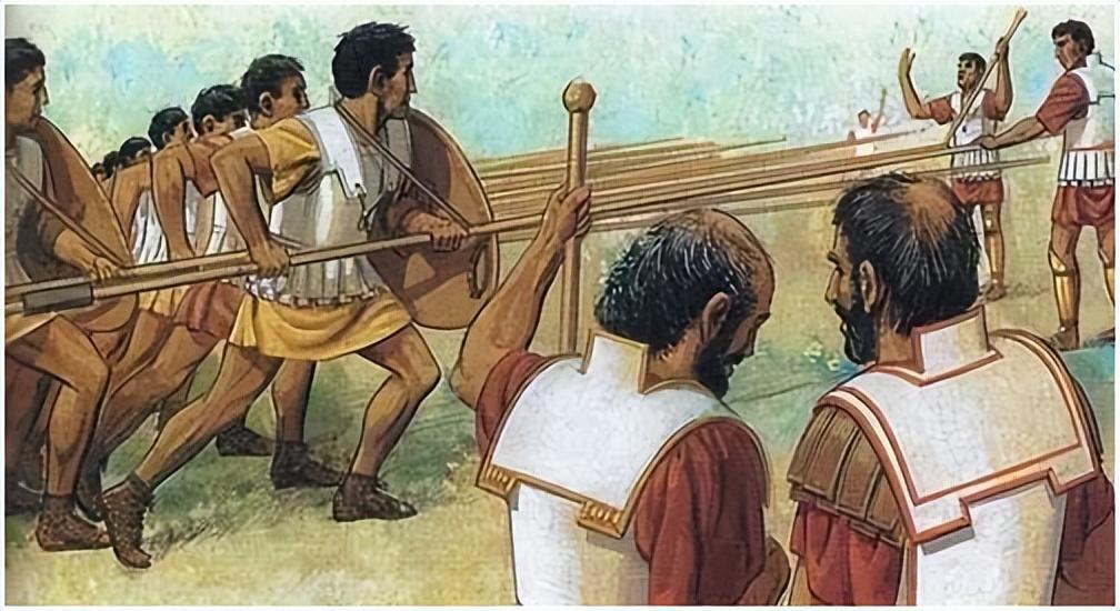 正在接受马其顿方阵训练的东方士兵