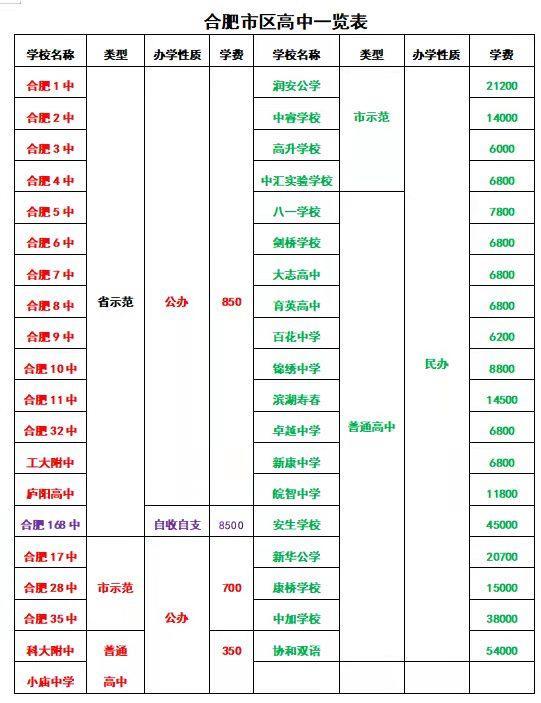 通过上面的介绍,想必家长们对合肥市区39所普通高中有了一定的了解,到底哪所高中是您家孩子心目中的理想高中?请持续关注下一篇《【万民说】带您了解合肥市区高中(2):相爱相杀的“大一六八”》。