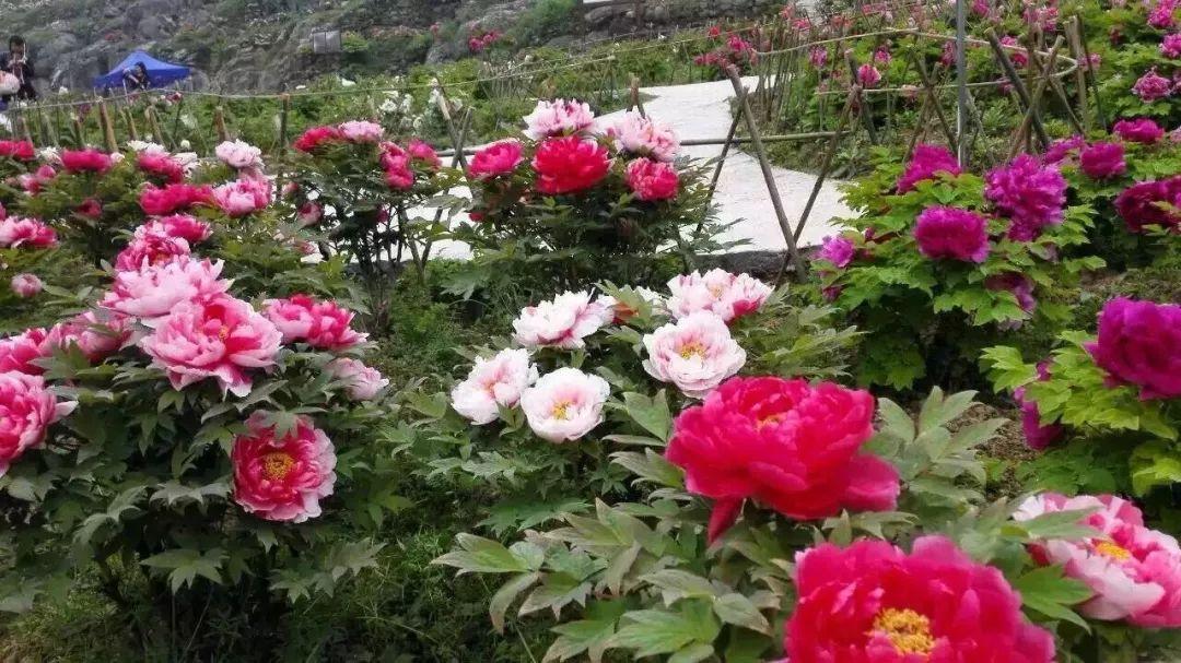 从栈道步行向下,在体会爬山的乐趣之余欣赏牡丹之美。