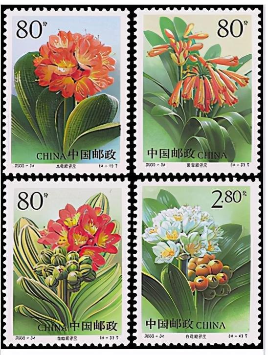 2000年12月12日,邮电部发行了《君子兰》特种邮票,全套四枚。图案展示了大花君子兰、垂笑君子兰、金丝君子兰、白花君子兰4种君子兰精品。