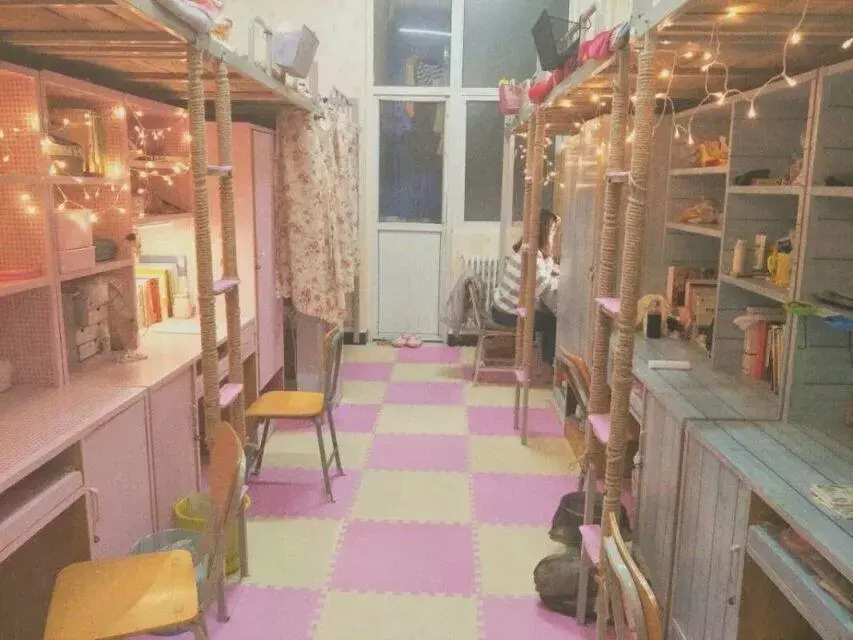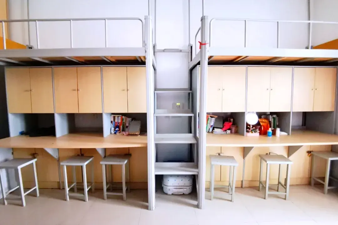 每间宿舍都有空调,一应俱全,全网络覆盖。大部分为八人间。