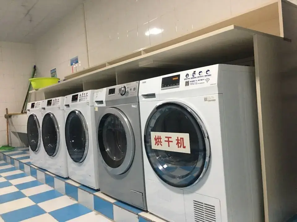 在每一层楼的拐角处都设有两个吹风机,使用价格是0.9元,然后在寝室楼一楼便生服务台处,有一台供免费使用的吹风机。还配有电梯,有专门的洗衣间。