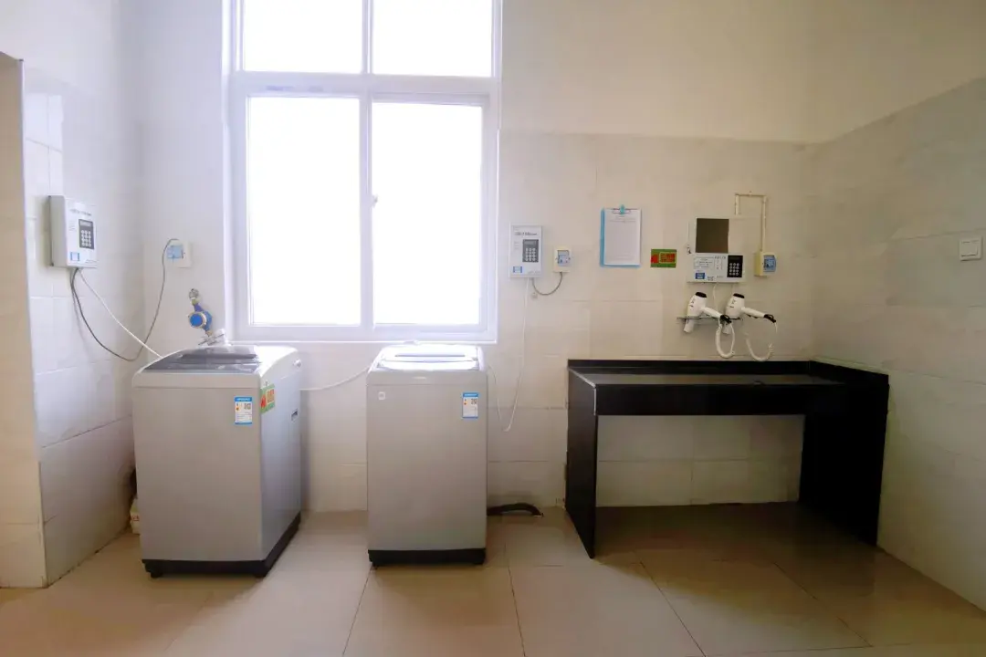 宿舍上床下桌,每间宿舍都有空调,饮水机遍布校园,洗衣机、吹风机更是日常所配