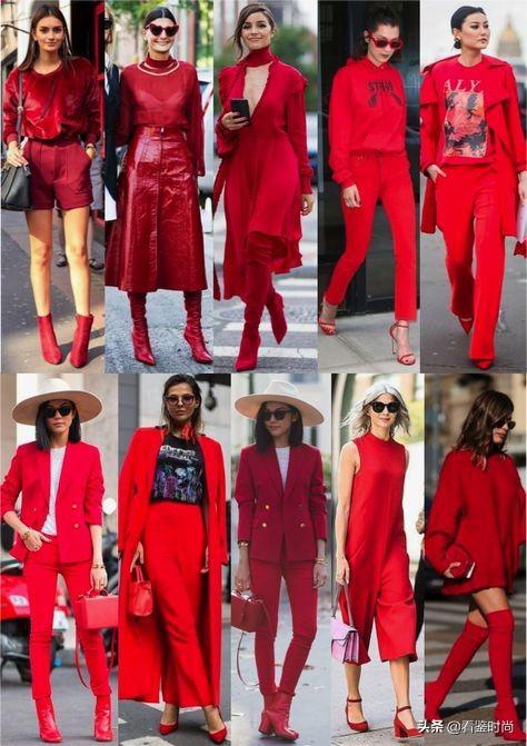 性格外向和大胆的人士会喜欢从头到脚的红色潮流。虽然看上去非常张扬,但却是非常的时髦和有着难以置信的视觉冲击力。因此,如果你想尝试全身红色的服装搭配,那就行动起来。最简单的操作是选择一条裤子和一件颜色相配的外套,然后,用浅色、深色或有图案的上衣混搭。