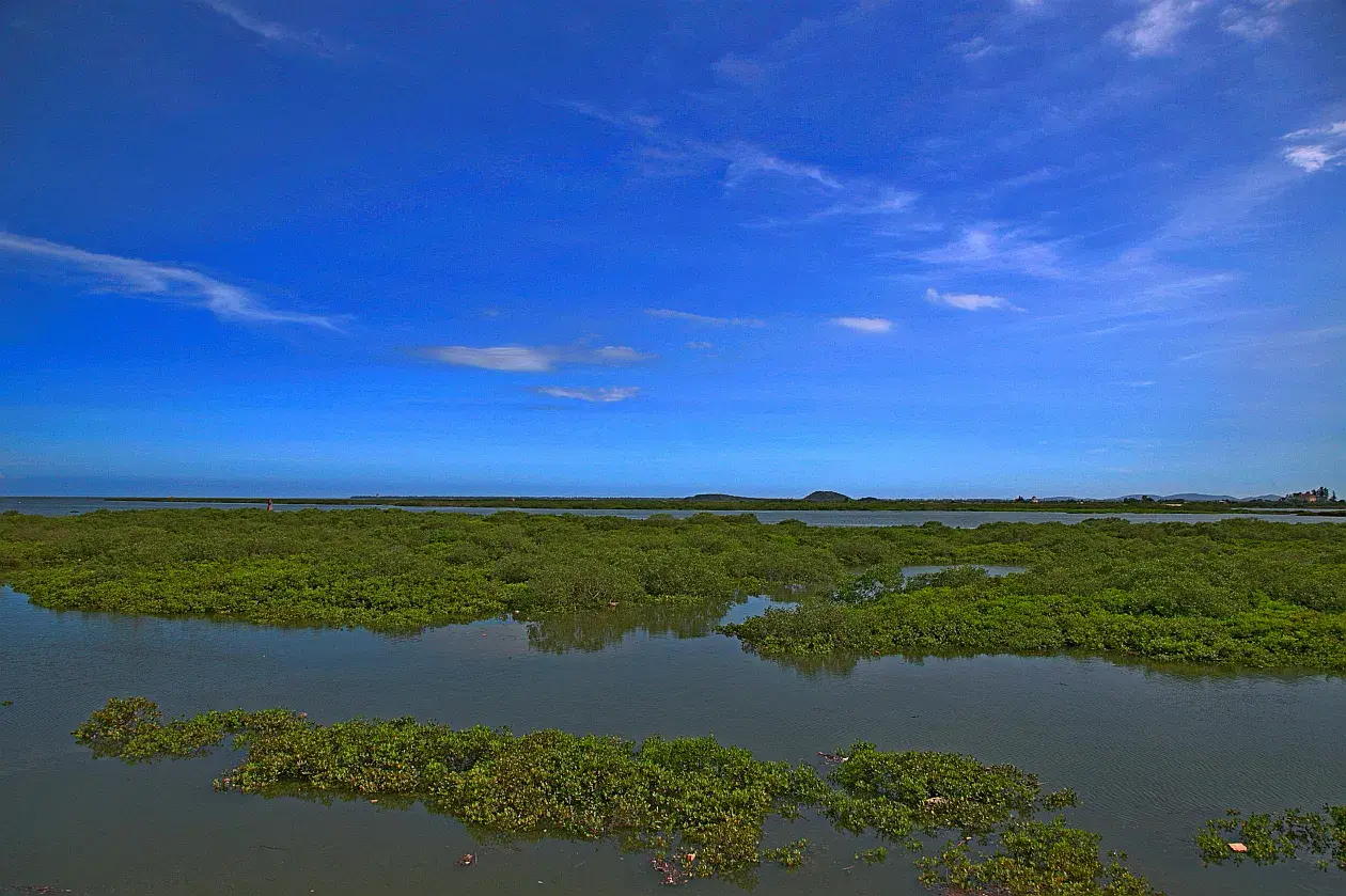 北仑河红树林:北仑河红树林是一个很有意思的地方,这个树林,长得很特别,显得格外梦幻,因而有人又称其为“海底森林”。在森林与海洋的共同努力下,防城港中的氧离子含量是其他城市的50-100倍。看得出来,地球对这个地方是格外的偏爱,赋予这里许多迷人的风光、独特的优势。都说一方水土养一方人,只有当地的水好、土好,当地的人才能长得好。这话可不是毫无根据的,而且防城港的存在就正好印证了这句话。防城港的水质干净清透,水里含有众多对人体有用的微量元素,人长期喝,可以改善体质,增强身体免疫力。另外,用这些水灌溉出来的农作物,鲜美甘甜,营养价值高,所以当地的蔬菜水果,不仅当地人爱吃,外地人向北仑河当地购买也是喜笑颜开。