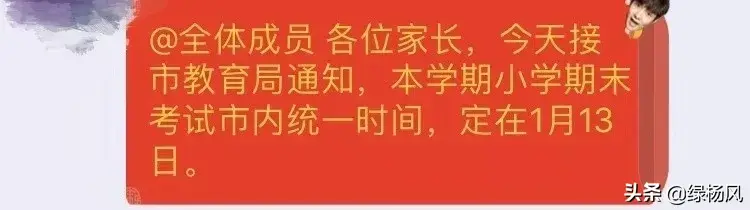 25日下午,教育部门发出紧急通知,小学考试时间调整为1月13-14日。13日为一、三、五年级考试,14日为二、四、六年级考试。