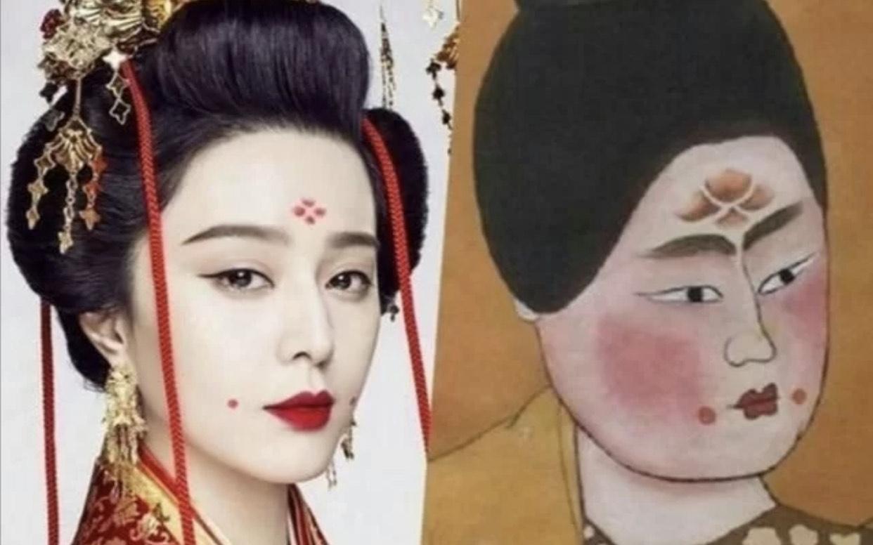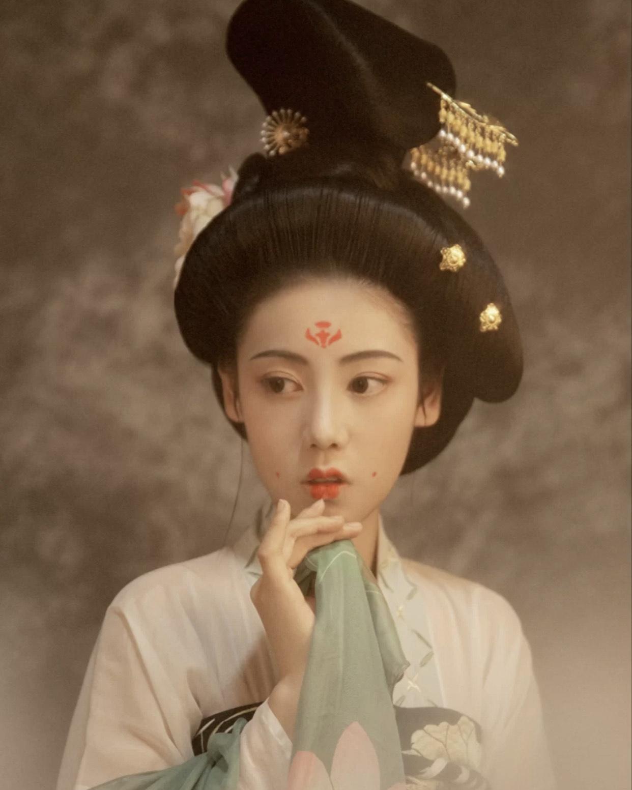 樱桃唇是古典美女长相标配,从唐画的真人像上也能看出唇妆的刻意缩小,樱桃般的大小和圆润。