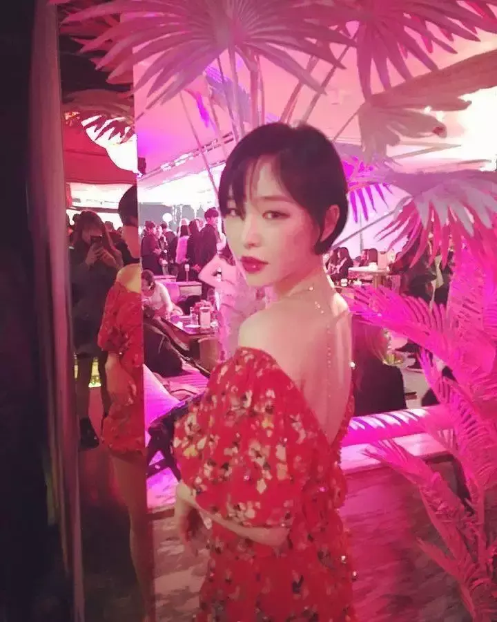 瑟琪可是SM公司里难得的单眼皮美女呢,让人一眼就印象深刻,眼妆不浓但一定有猫派眼妆不可少的上勾眼尾!不用正红色而是橘棕色的口红,降低猫派的冰山冷艳感。