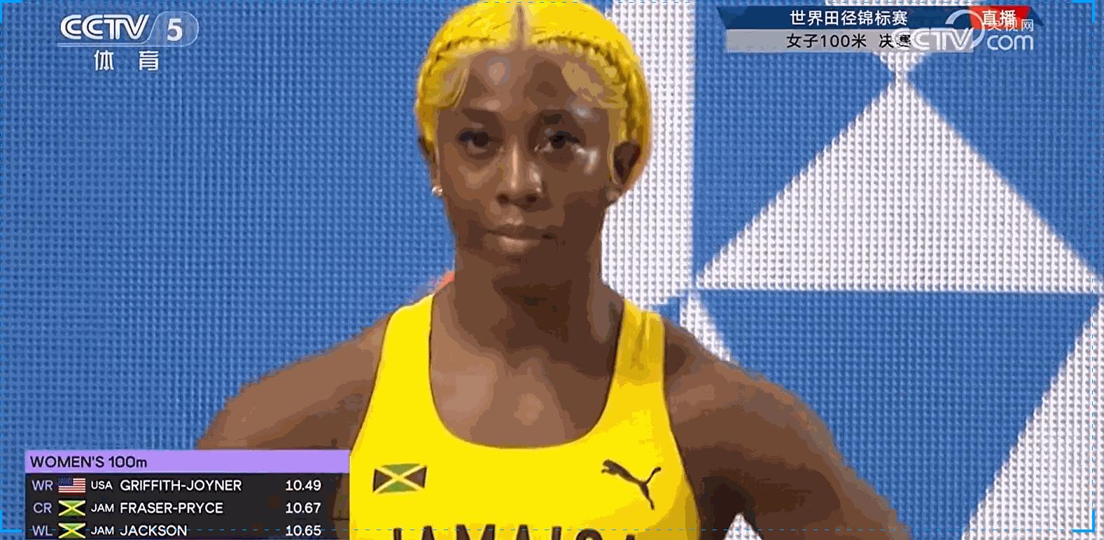 最终,弗雷泽10秒77获得铜牌,另一位牙买加选手杰克逊获得银牌,9道美国年轻选手以10秒65获得冠军,塔卢第四。