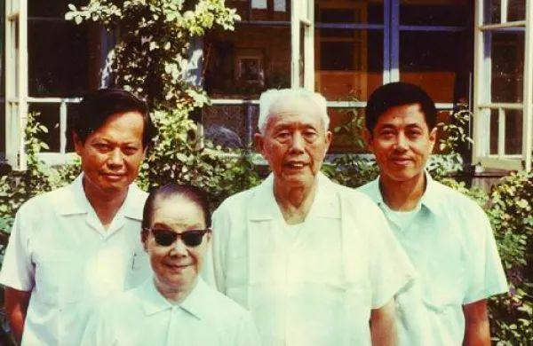 1977年夏,吴有训(右二)生前最后一次会见杨振宁(左一)