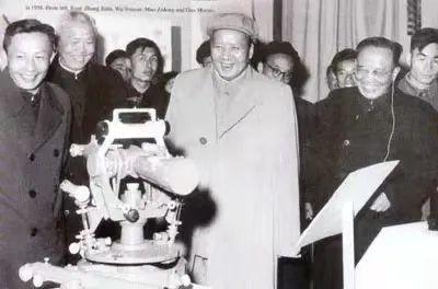 1958年,毛主席参观中国科学院研究成就展,前排左二为吴有训