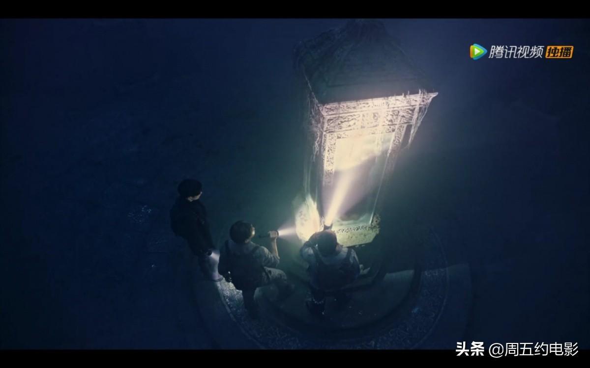 底部石碑的场景还原的也不错:台阶墙壁上的英文字母,水里的潜水镜,小哥回忆与吴三省等人20年前下海底墓的情形等。
