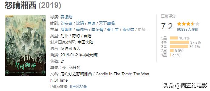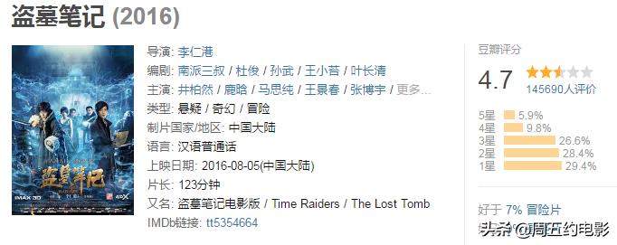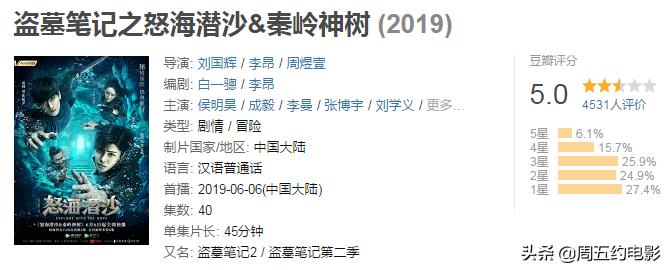 下面要说的就比较尴尬了,因为小白我也看了一下,《盗墓笔记》的改编整体貌似不是很顺利,清一色的扑街分数多多少少能反映出某些问题。