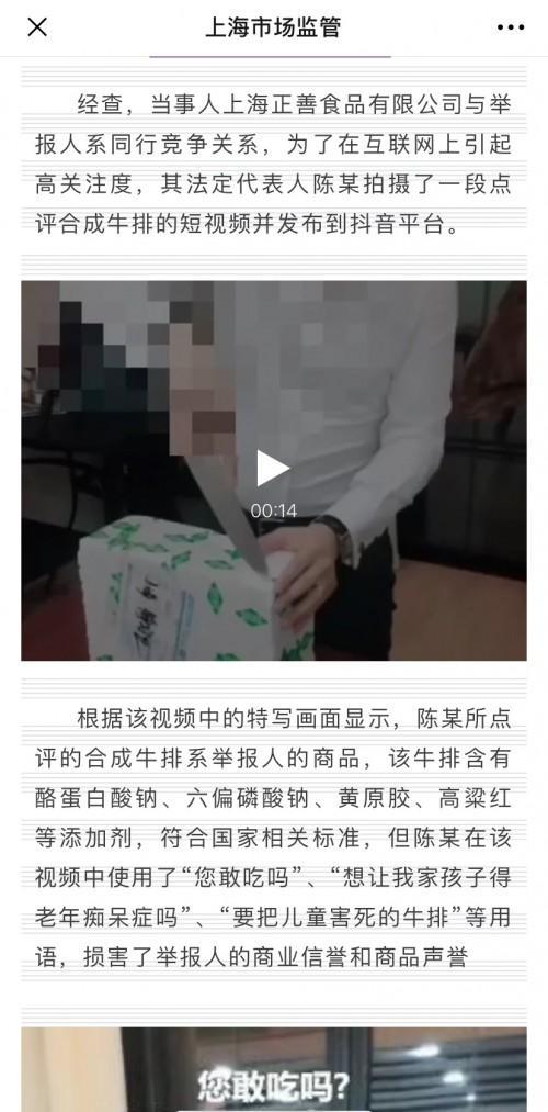 近日,知名“抖音带货王”正善牛肉哥被当地工商部门罚款10万元的消息成为网络热议话题。根据媒体报道,上海市黄浦区市场监管局接某公司举报,反映其竞争对手上海正善食品有限公司法定代表人陈某(牛肉哥)在抖音网发布诋毁该公司的视频,因此诉诸工商部门。事件发酵之后,各方众说纷纭。特别是视频中矛头直指的“合成牛排”和腌制牛排,是否真的如牛肉哥所言存在严重质量问题,过量食用造成儿童身体损伤?这一切,其实并非空穴来风。有不少网友则坦言,或许,牛肉哥的原切牛排,真得动了一些“合成牛排”厂商的利益蛋糕,遭到报复也就在所难免了。