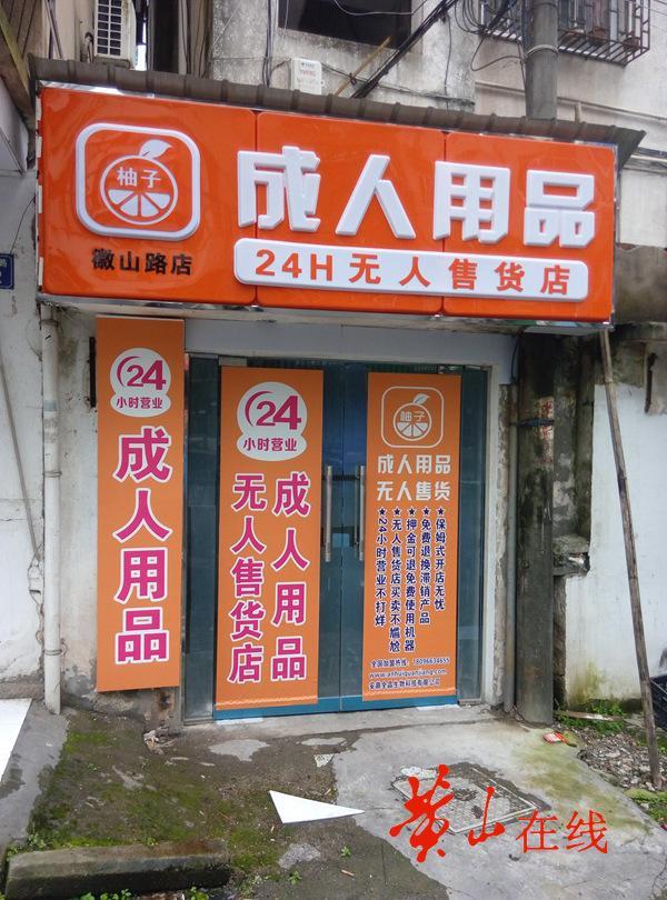 在徽山路,一家名为“柚子”的24小时成人用品店橘黄色的招牌也很显眼,进入后,与“携购”内摆设相差无几,但在店内四周,还摆放有多张“加盟”广告。记者看到,“柚子”的两台售卖机里,一些产品已经“空位”,很显然,已经有消费者光顾过。