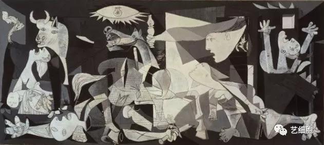 毕加索最著名的绘画,于1937年完成,是在法国巴黎绘制的,创作灵感来自于西班牙内战期间被轰炸的格尔尼卡小镇。 这幅画目前在西班牙马德里的博物馆中展出。