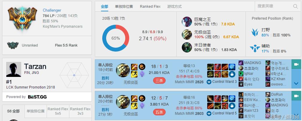 今天给大家深度分析的便是韩服高分打野,同时也是LCK夏季赛新队伍Griffin的主力打野Tarzan在排位中与自家AD双排的实战素材。