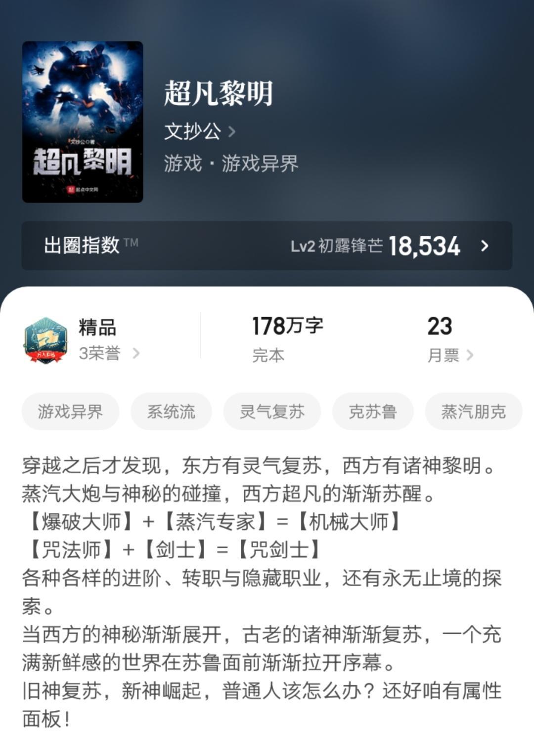 有些读者不喜欢看《诡秘之主》,这本却是可以接受的。小说均订过万,表现还是非常不错的。不得不说,文抄公确实是有实力的。