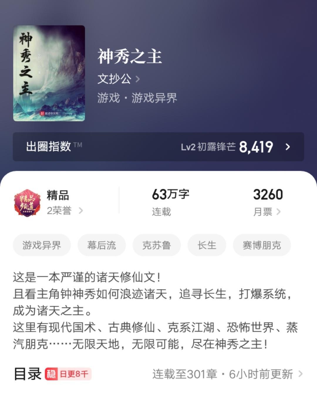 最后,你觉得文抄公的这本《神秀之主》怎么样呢?你是否在看呢?