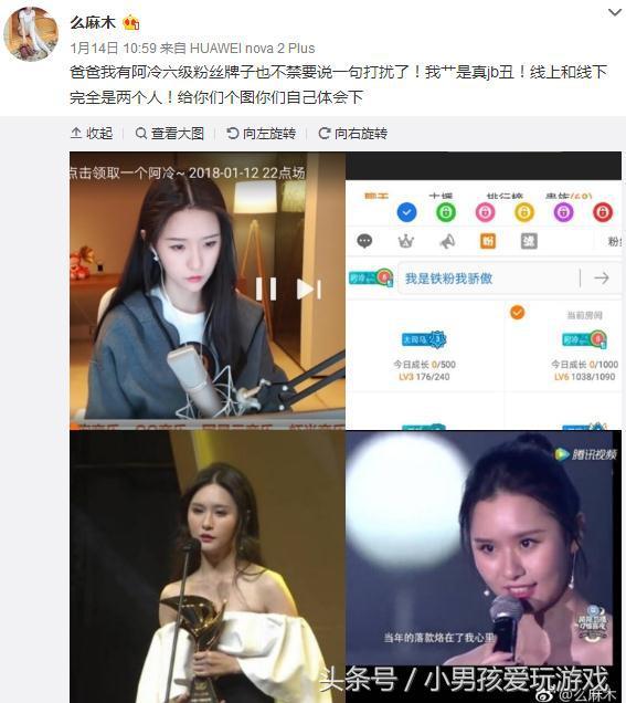 而且更有阿冷直播间的粉丝发微博说自己有阿冷6级的粉丝牌子,在看到阿冷的真容后都要说打扰了,线下和线上简直就是两个人,还PO出了对比图。