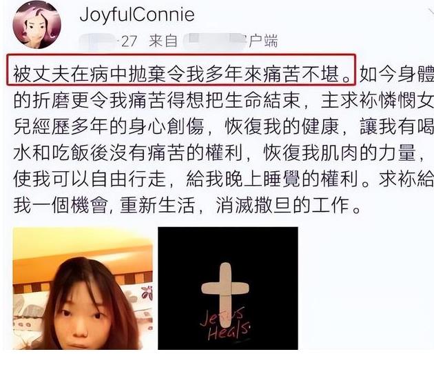 照片中的她颧骨深深凹陷,身体浮肿,面黄肌瘦,整个人看起来毫无生气,丝毫看不出是嫁入豪门的少奶奶。