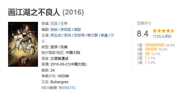 真人版的《画江湖之不良人》有多好?看看豆瓣目前对这部剧的评分吧。