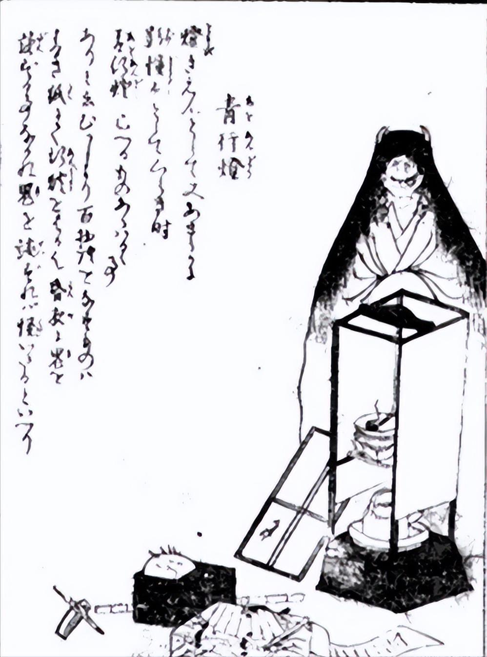 青行灯据说是一种非常可怕的鬼怪,他的本体不是人,而是地狱的小鬼,时常会在冥界的入口徘徊,变成我们熟悉的人的样子来跟我们一起玩一种叫“百物语”的游戏。